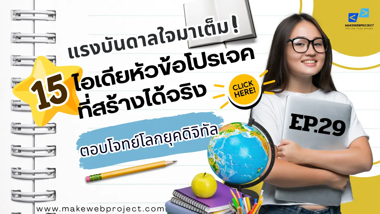 อ่านต่อ...กำลังหาไอเดียโปรเจคอยู่ใช่ไหม? EP.30 นี้รวม 15 หัวข้อโปรเจคเด็ดๆ ทำได้ทั้งเดี่ยวและกลุ่ม ครอบคลุมตั้งแต่เว็บแอปจนถึง AI พร้อมแนวคิดเริ่มต้นให้คุณนำไปต่อยอดได้จริง!