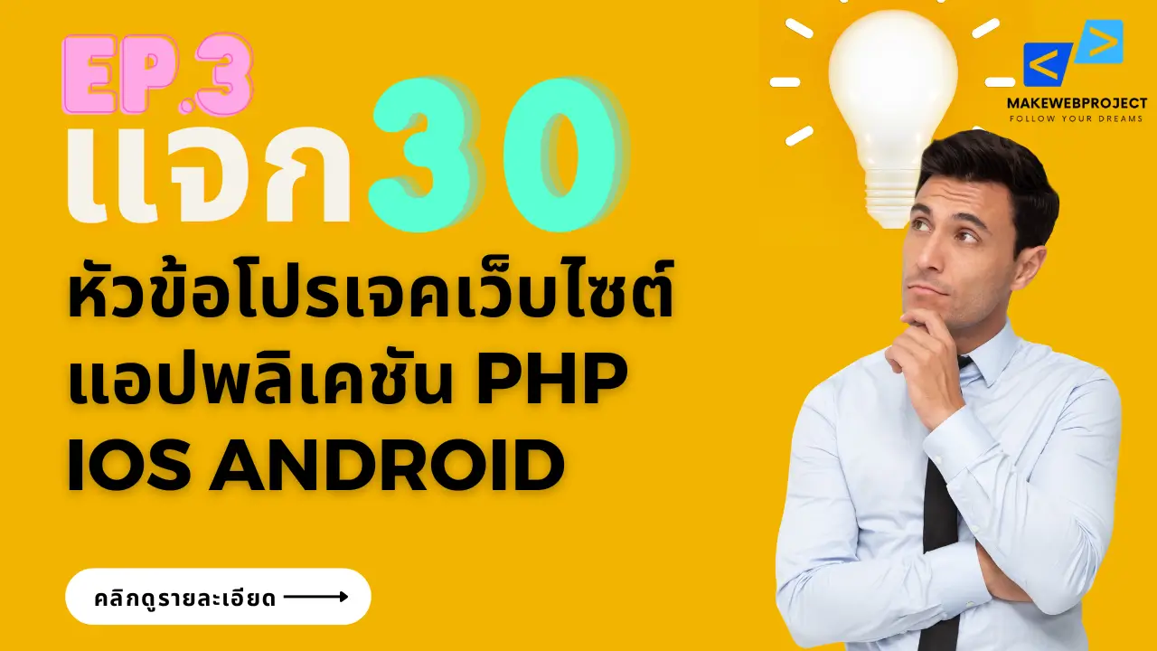 อ่านต่อ...แจก 30 ตัวอย่างหัวข้อโปรเจคเว็บไซต์และโมบายแอปพลิเคชันฟรีๆ เพื่อเป็นไอเดียต่อยอด ใครที่ยังคิดหัวข้อโปรเจคไม่ออกมาดูที่นี่ก่อนจ้า มีหัวข้ออื่นให้เลือกด้วยนะ