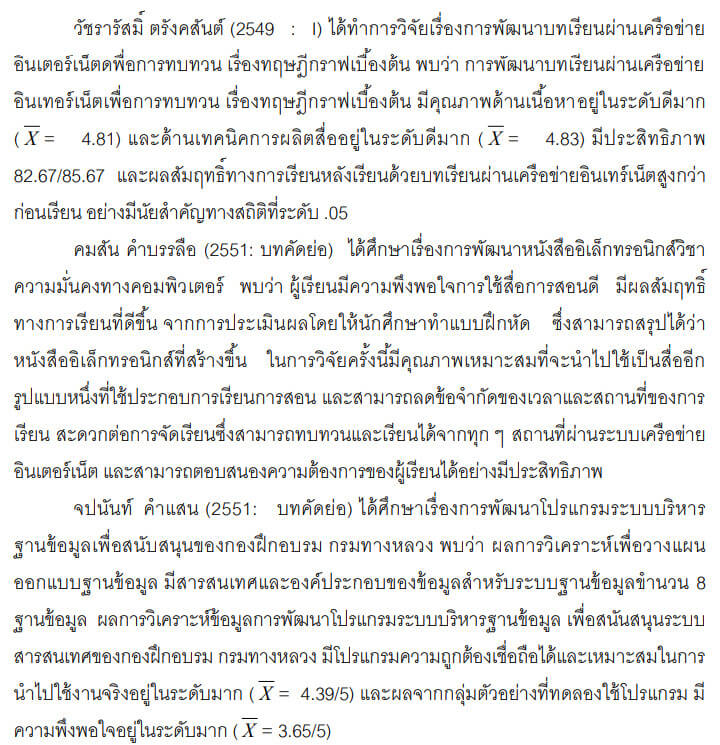 - งานวิจัยที่นำมาอ้างอิงหรือทบทวนไม่เกิน 5 ปี